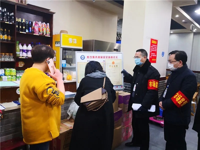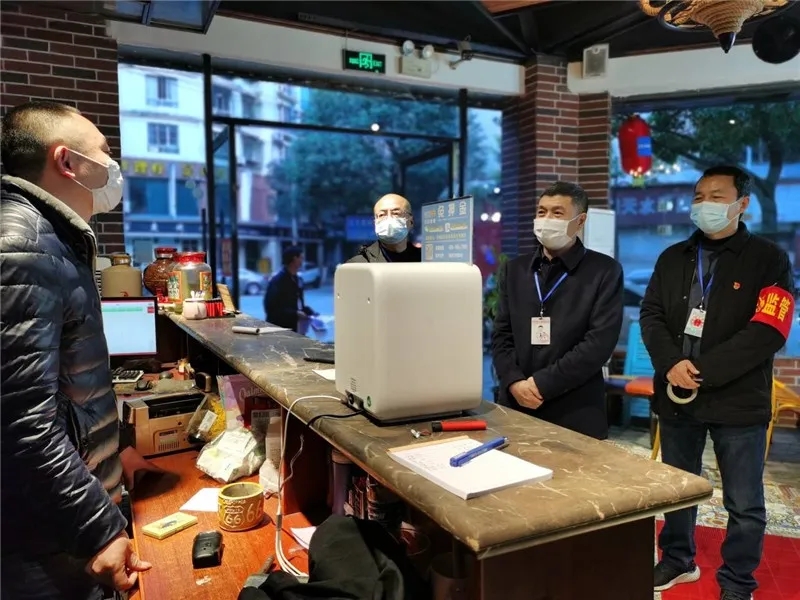 面臨當前復雜的防控形勢,市區兩級監管部門在三級聯動的基礎上再部署再細化,落實網格化監管措施,將市城區劃分為10個片區45個網格,打樁定位,劃片包干,責任到人,構建全覆蓋、無死角的疫情防控網格化監管責任網。在每一個街道、每一家飯店都落實有監管人員。通過每日巡查、定點監督、回頭看等方式,全覆蓋監管,拉網式排查,督促餐飲單位落實疫情防控措施。“嚴陣以待”,防止人員聚集。