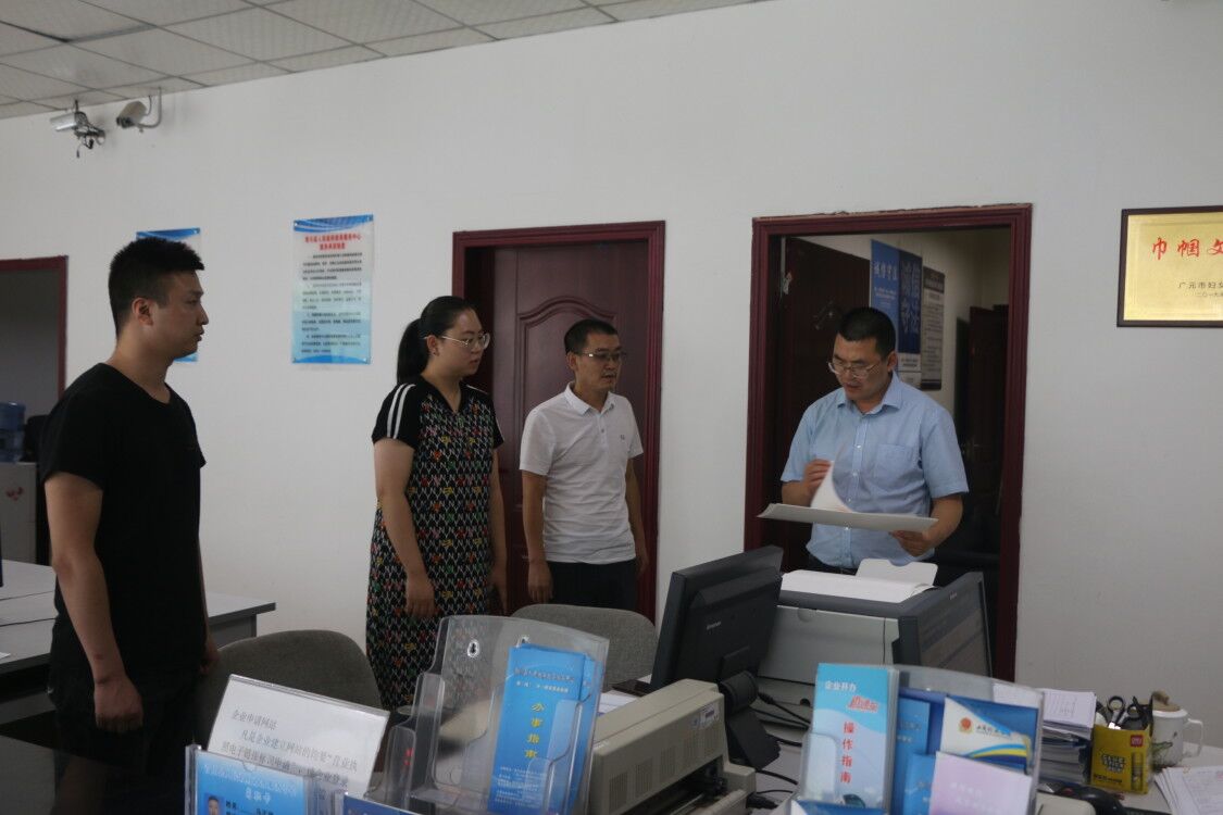 李代根實(shí)地查看青川縣市場監(jiān)管前臺宣傳資料擺放、工作人員業(yè)務(wù)辦理及后室辦公情況,詳細(xì)了解窗口人員設(shè)置、印章刻制和“營商通”實(shí)際運(yùn)作情況,并與窗口人員深入交流。