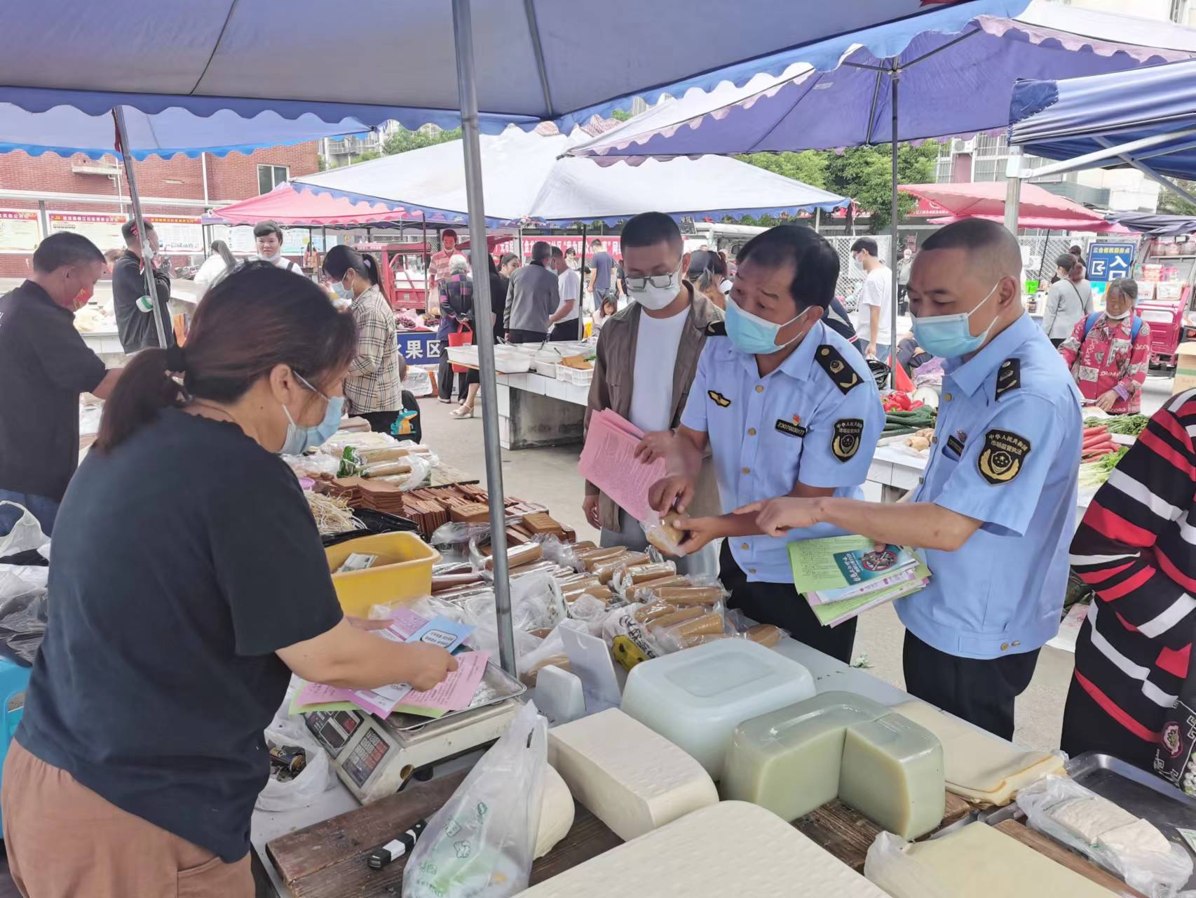 本次活動(dòng)采取“集中+分散”的模式開展,分別在全區(qū)商超、農(nóng)貿(mào)市場(chǎng)、母嬰店、餐飲店、學(xué)校、社區(qū)和藥店等重點(diǎn)場(chǎng)所協(xié)同推進(jìn)。9月9日上午,區(qū)食安辦組織區(qū)市場(chǎng)監(jiān)管分局、區(qū)社事局、區(qū)農(nóng)業(yè)農(nóng)村局和盤龍鎮(zhèn)等部門在盤龍鎮(zhèn)陵江社區(qū)和三合市場(chǎng)集中設(shè)點(diǎn)開展食品安全宣傳周活動(dòng),利用食品生產(chǎn)經(jīng)營(yíng)單位、藥店、商城、超市、農(nóng)貿(mào)市場(chǎng)和學(xué)校的LED顯示屏滾動(dòng)播出宣傳標(biāo)語130余條,發(fā)放食品安全宣傳資料500余份,廣泛進(jìn)行誠(chéng)信從業(yè)、食品安全知識(shí)普及等宣講活動(dòng),共同營(yíng)造食品安全共治共享的良好氛圍。