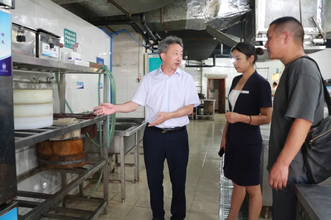 在國際大酒店和梨花苑酒店,檢查組一行重點查看了食品加工設備的運行、食品原輔材料的采購貯存、從業人員健康狀況、食品留樣、餐具清洗消毒、餐廚廢棄物處置情況,查閱了豬肉索證索票情況,進貨、餐廚廢棄物處置和餐具消毒臺賬。馮治勤指出,食品安全關系到我們每一個人的健康,要嚴把進貨關,禁止采購和使用《食品安全法》禁止經營的食品,切實落實食品及食品原材料索證、索票制度,建立詳細的進貨臺賬,做到所有食品及食品原材料采購均能溯源;要嚴把存儲關,建立健全食品存儲操作規程與存儲管理制度;嚴格落實餐廚廢棄物臺賬管理制度,詳細記錄餐廚廢棄物的種類、數量、流向、用途等情況,切實保障人民群眾“舌尖上的安全”。