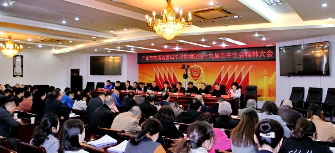 日前,廣元市市場監督管理局組織召開全體干部職工會議,集中傳達學習黨的十九屆五中全會精神,安排部署學習貫徹工作。黨組書記陳懷乾主持會議并講話,局長劉素英及局領導班子成員參加會議。