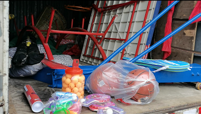 “太好了,我們終于有健身器材了”,村民們迫不及待的卸載著貨車上捐贈的健身器材。