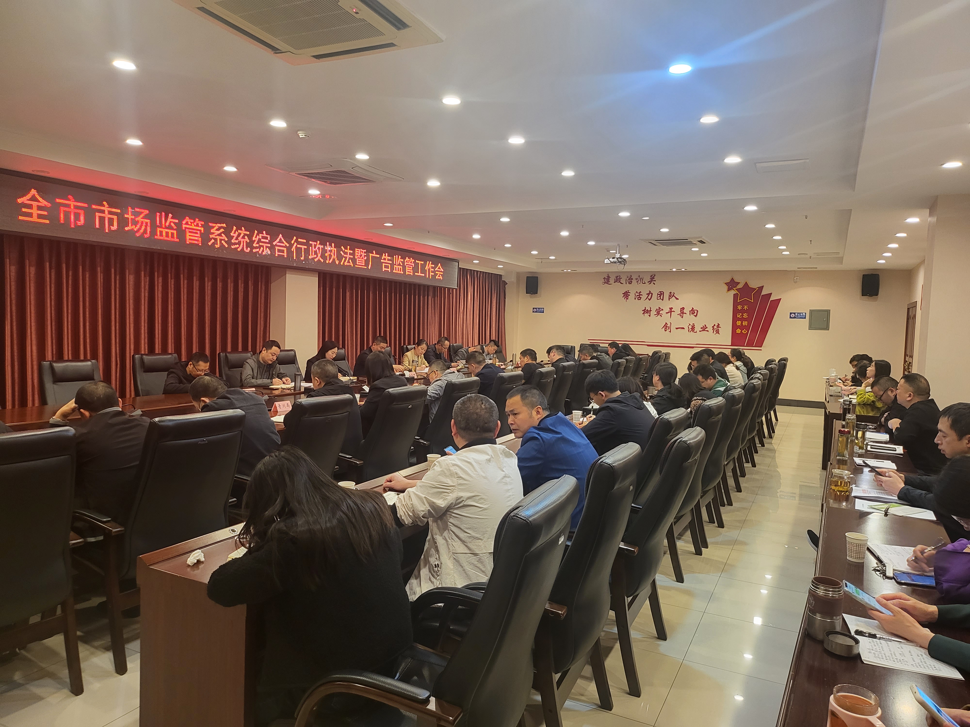 4月28日上午,廣元市市場(chǎng)監(jiān)管系統(tǒng)執(zhí)法稽查工作會(huì)議在市市場(chǎng)監(jiān)督管理局5樓會(huì)議室召開。市市場(chǎng)監(jiān)管局副局長(zhǎng)王成樹主持會(huì)議并作講話,市市場(chǎng)監(jiān)管綜合行政執(zhí)法支隊(duì)全體人員以及各縣區(qū)市場(chǎng)監(jiān)管局分管執(zhí)法工作的局領(lǐng)導(dǎo)和具體負(fù)責(zé)人共計(jì)50余人參會(huì)。