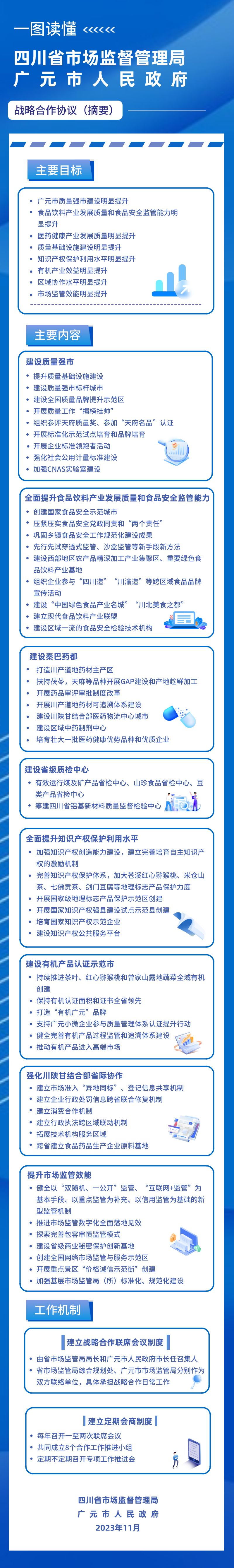 11月23日,廣元市人民政府與省市場監管局戰略合作協議簽約儀式在我市舉行。市委書記何樹平、省市場監管局局長陳凱出席并講話,市委副書記、市長董里出席。