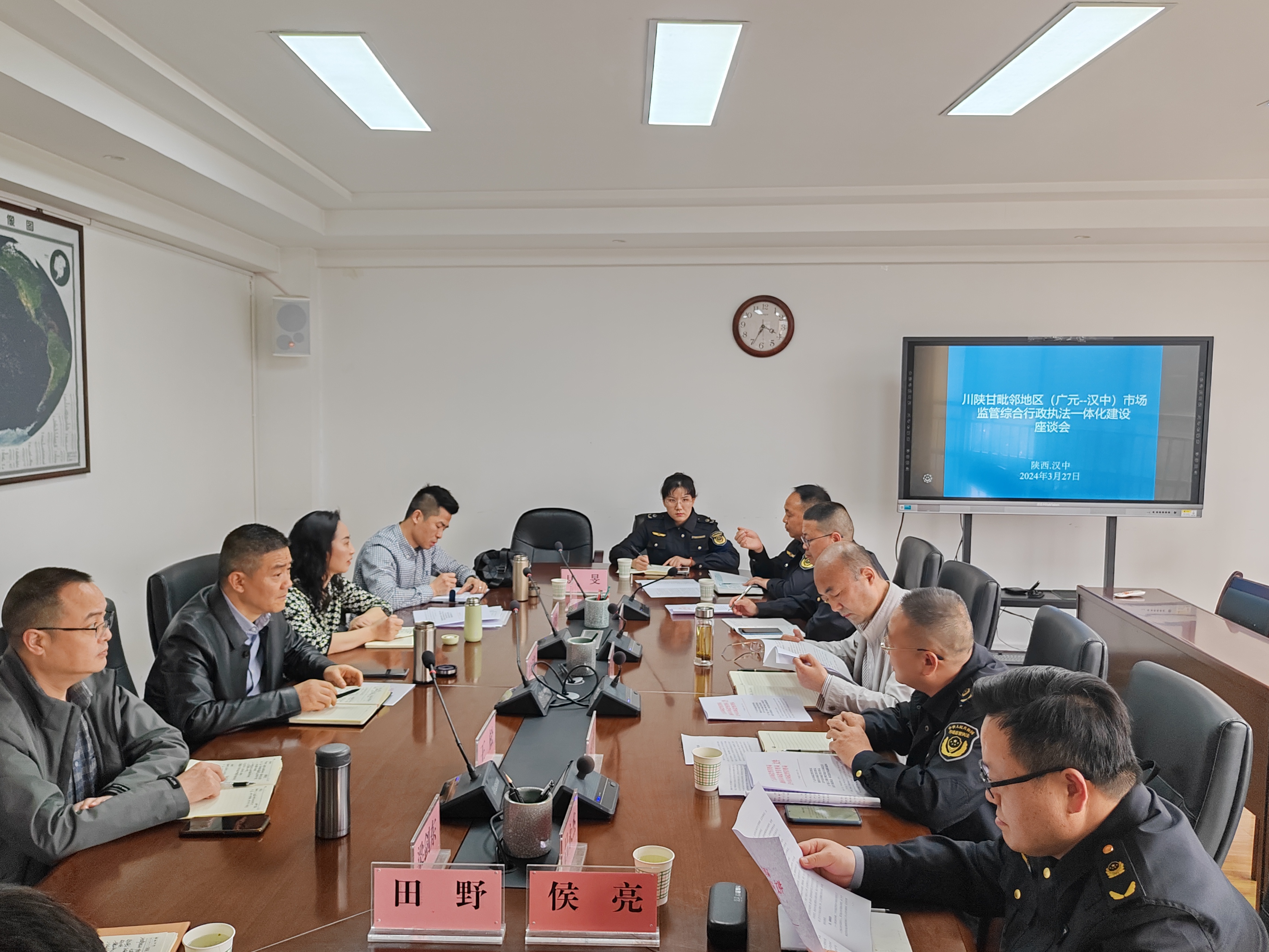 為促進川陜甘毗鄰地區市場監管營商環境一體化合作落地落實,構建市場監管綜合行政執法協作新格局,3月26日至27日,市市場監管局副局長(兼)、市市場監管綜合行政執法支隊副支隊長王成樹帶領相關科室、隊負責人,分別前往隴南、漢中兩地市市場監管局就川陜甘毗鄰地區市場監管綜合行政執法一體化協作相關事宜進行座談交流,隴南市市場監管局黨組成員、副局長魏和平,漢中市市場監管局三級調研員李萬利出席會議并參加座談交流。