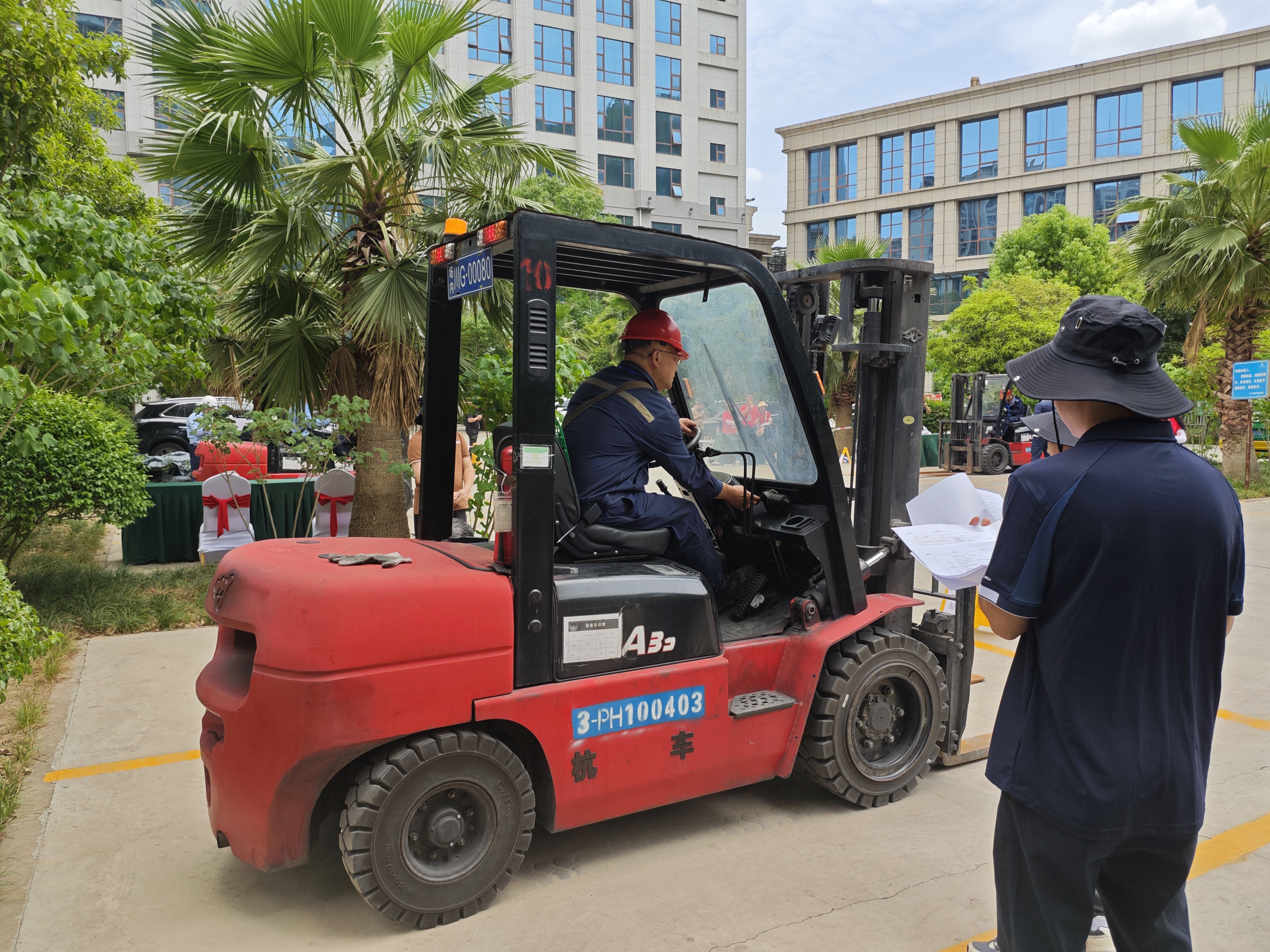 活動現場配備了4臺內燃平衡重式叉車,預設主要受力結構件缺陷、安全標志缺失、安全保護裝置失效等典型故障項目。參賽人員嚴格按照檢驗規范和技術要求,對設置的故障隱患精準排查并規范記錄數據。由9名行業專家組成的裁判組本著嚴謹、客觀、公正的態度,對參賽人員的檢驗流程、儀器操作、記錄規范等方面進行嚴格評分。廣元市特檢所憑借扎實的專業技能、嚴謹的檢驗流程和高效的團隊協作,榮獲綜合團體一等獎。