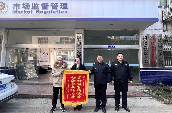 近日,劍閣縣市場監管局普安分局在處理一起消費糾紛的過程中,堅持事實清、責任明,高效維護了消費者的合法權益。同時,秉持依法行政與指導服務并重的工作態度,針對企業合規經營主動提出建議,幫助企業提升管理水平,獲贈“柔性監管有溫度,助企營商有力度”錦旗。