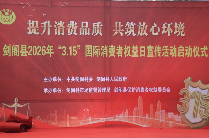 3月13日上午,劍閣縣下寺鎮沙溪壩步行街人頭攢動,氣氛熱烈,以“提升消費品質 共筑放心環境”為主題的劍閣縣2026年“3·15”國際消費者權益日宣傳活動啟動儀式在這里隆重舉行。縣委常委、政法委書記甘興禮出席活動并作重要講話,縣市場監管局、縣公安局、縣文廣體旅局等20余個縣消委會成員單位代表、市場主體代表及各界群眾參加活動。