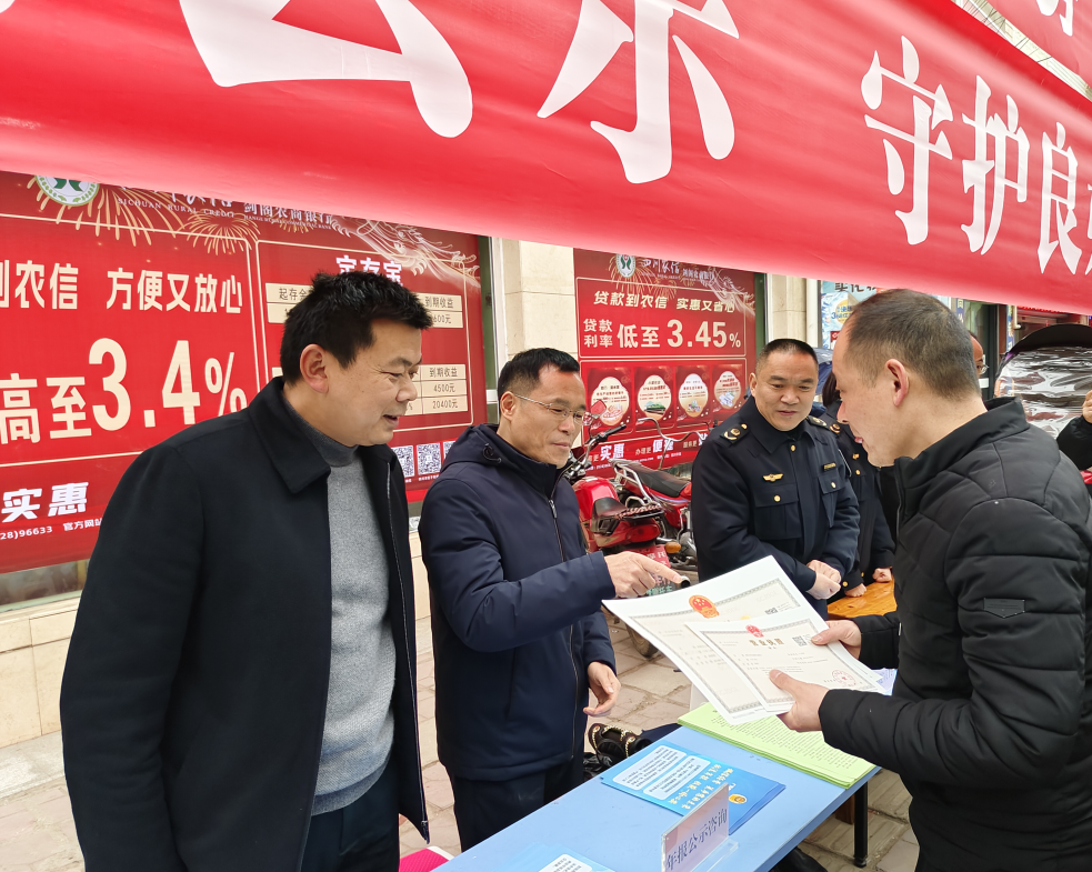 新春臨近,年味漸濃,各地返鄉人員激增,為便利返鄉人群創業,2月1日上午,市市場監管局聯合劍閣縣市場監管局,在劍閣縣公興鎮開展了“祥龍賀新春 創業送服務”活動,開展登記注冊現場服務,發放法律法規及政策宣講資料,提供年報及食品經營許可、計量器具檢定等咨詢指導服務。